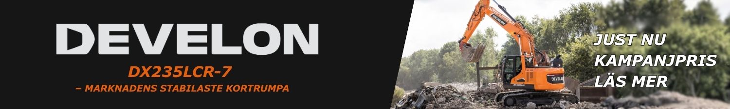 Grävmaskin från Develon, en perfekt kombination av kraft och intelligens! Develon har ett brett modellprogram av bandgrävare, allt från 14 till 100 tons storlek. Samtliga av dessa grävmaskiner är utrustade med senaste miljömotor som möter rådande krav.