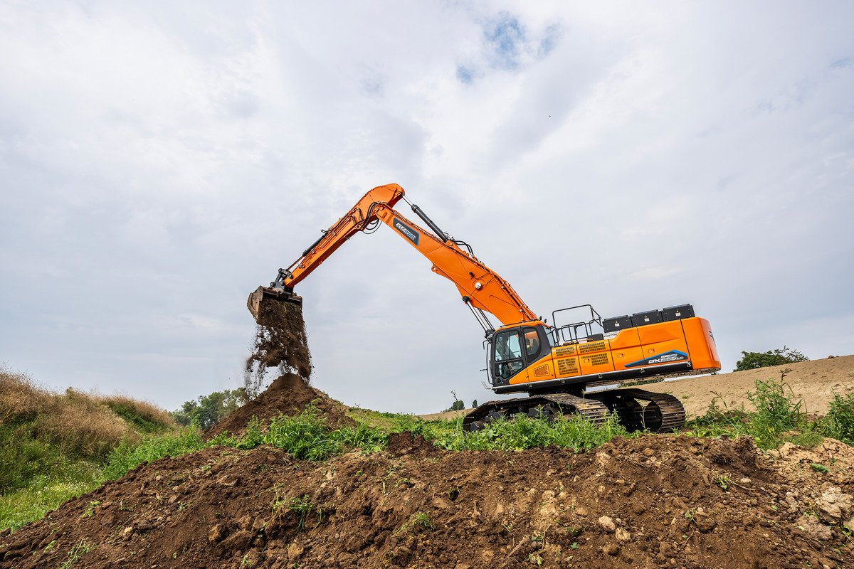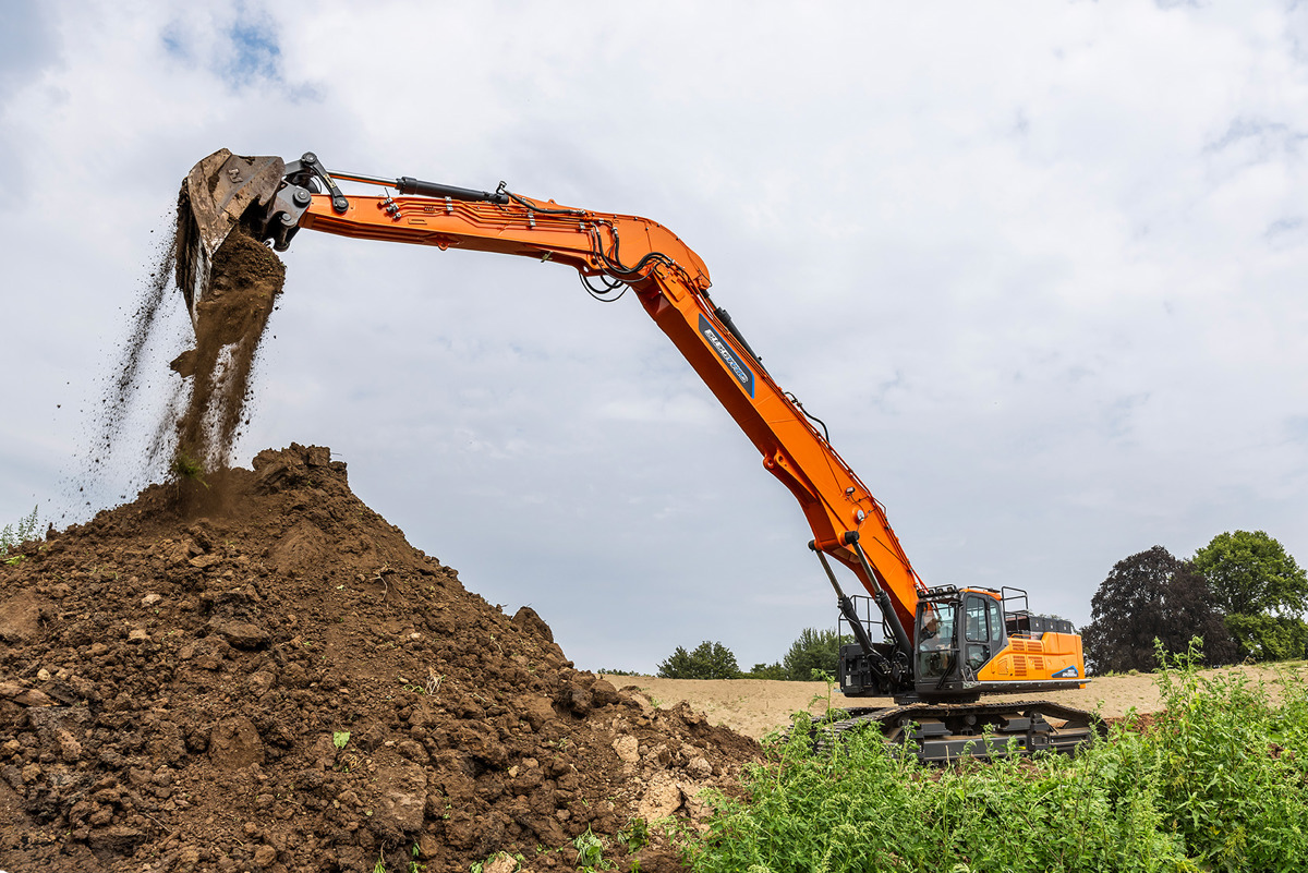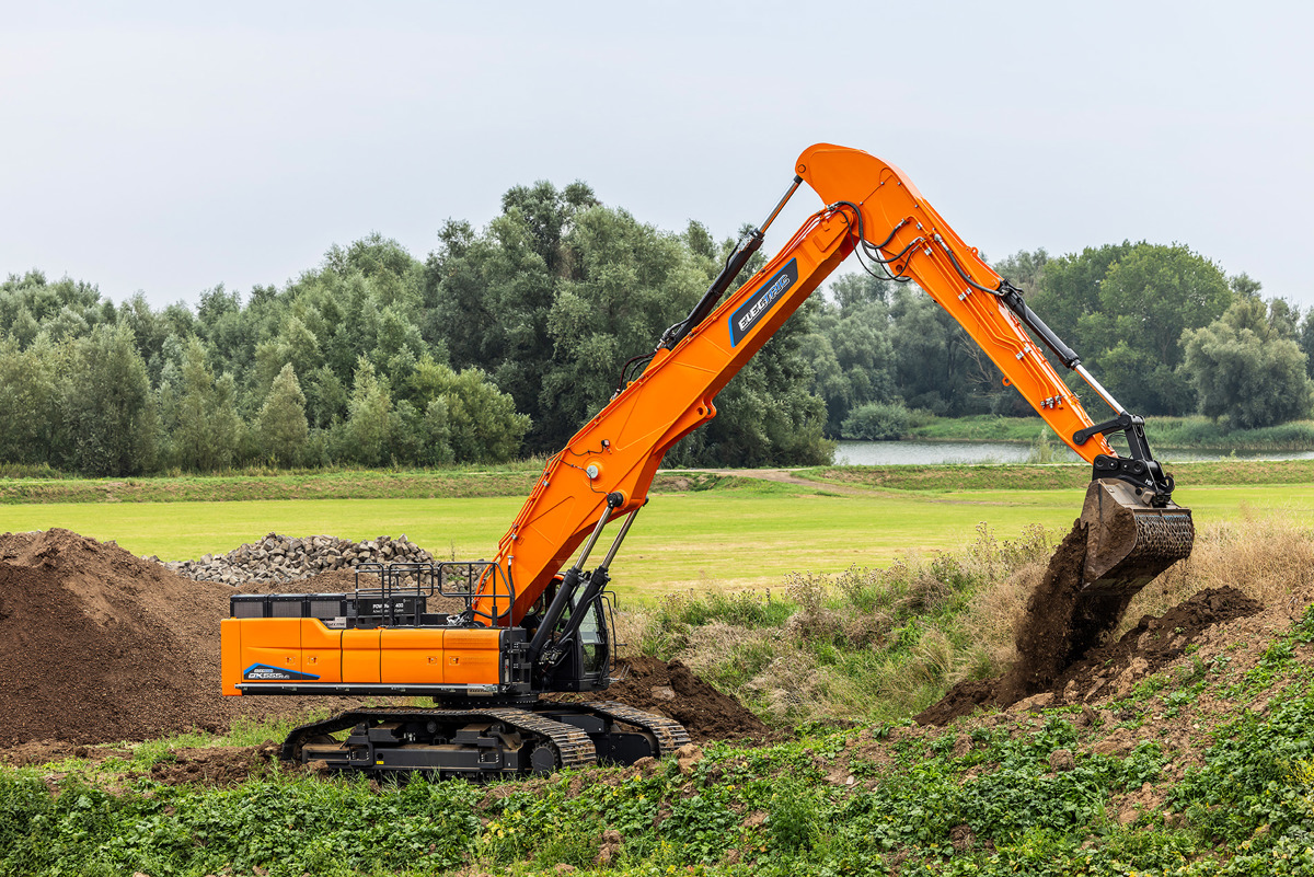 DX555LC Electric drivs av en kraftfull elmotor med en märkeffekt på 294 kW, vilket ger jämn, stark och responsiv prestanda i alla arbetsmoment. Den elektriska drivlinan ger låg energiförlust, hög verkningsgrad och ett tystare arbetsflöde utan att kompromissa med maskinens kapacitet.